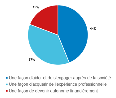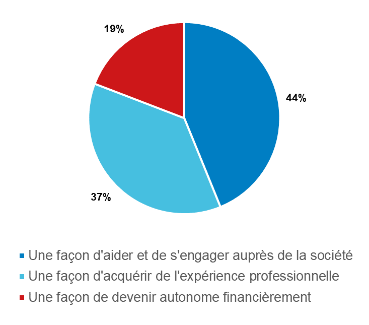 Selon eux, le dispositif a une utilité au niveau professionnel puisque 72 % pensent que cette forme de volontariat les a aidé dans leur parcours et 37 % considèrent que c'est une façon d'acquérir de l'expérience professionnelle.